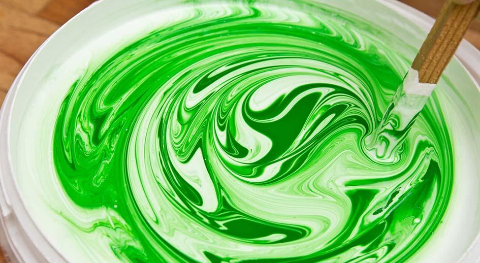 Нанесение рисунка. Краска разводится спиртом и постоянно перемешивается, чтобы не потерять вязкость.